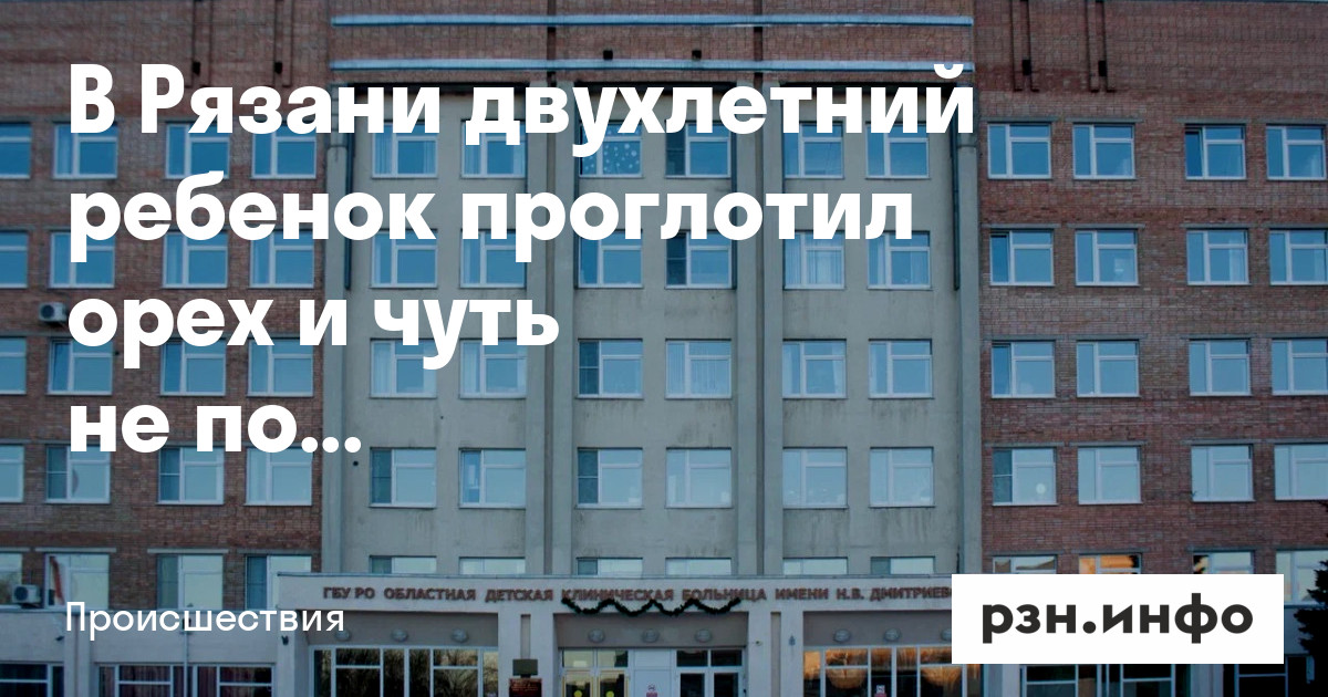 В Рязани двухлетний ребенок проглотил орех и чуть не погиб. Об этом сообщает региональный минздрав.