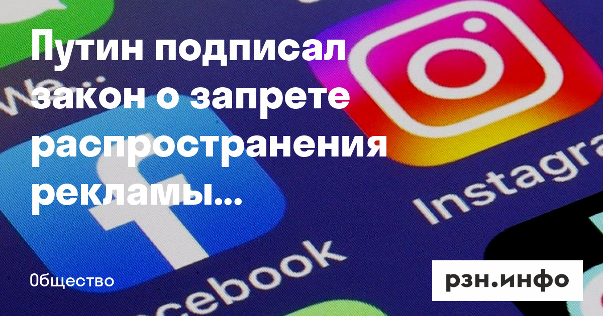 Президент России Владимир Путин подписал закон о запрете распространения рекламы в Instagram* и Facebook*.
