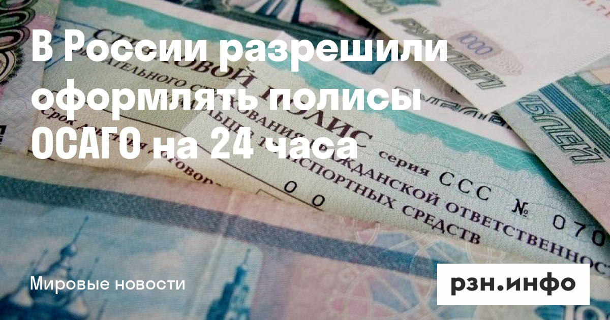 В России разрешили оформлять полисы ОСАГО на 24 часа. Об этом пишет газета «Известия» со ссылкой на Национальную страховую информационную систему.