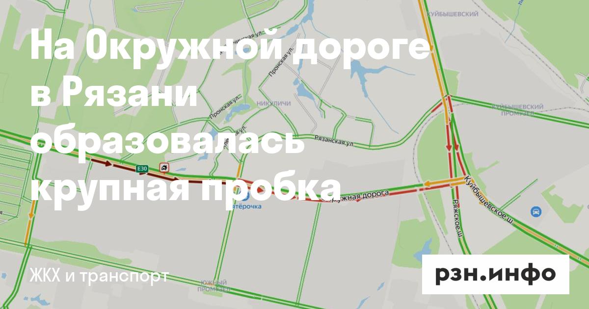 На Окружной дороге в Рязани образовалась крупная пробка. Об этом сообщают «Яндекс карты».