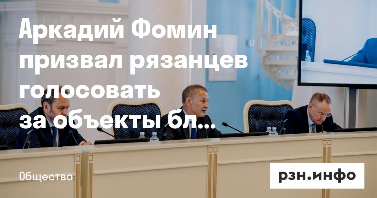 В среду, 14 мая, на заседании Рязанской облдумы спикер регионального парламента Аркадий Фомин напомнил, что продолжается Всероссийское голосование за объекты благоустройства в рамках нового национального проекта «Инфраструктура для жизни». Об этом сообщила пресс-служба облдумы.