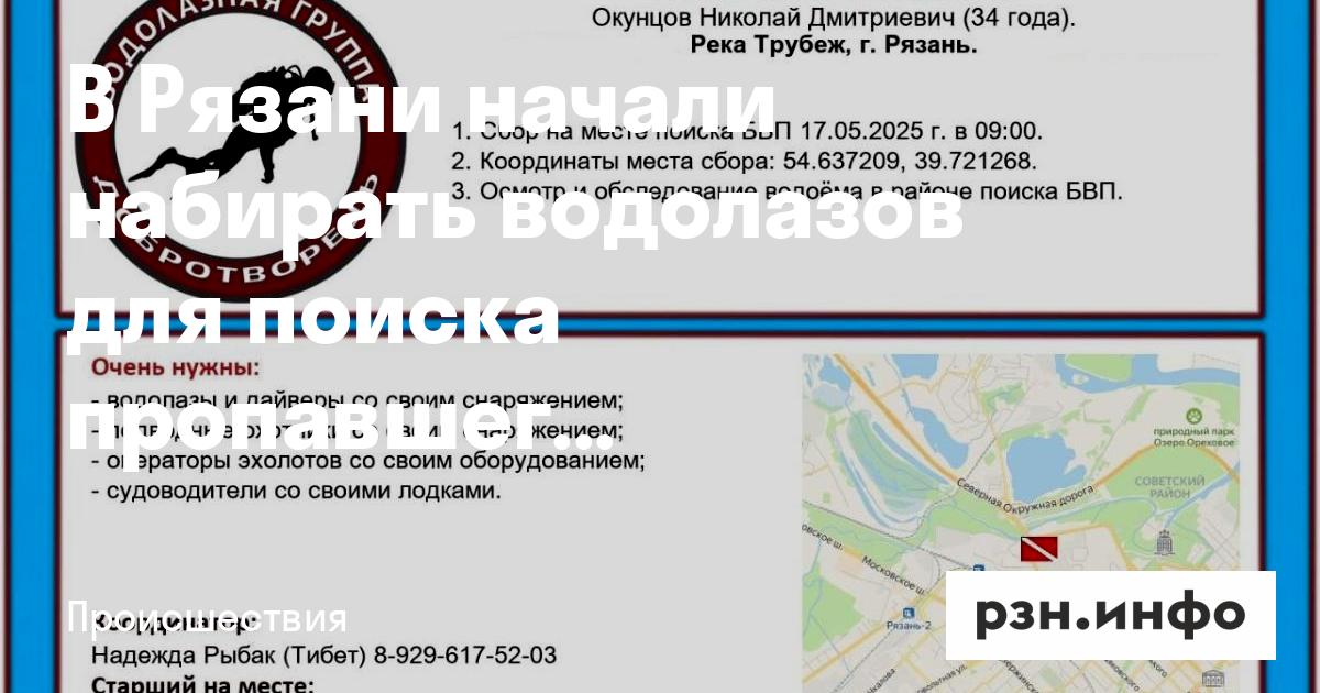 В Рязани начали набирать водолазов для поиска пропавшего мужчины. Об этом сообщается в группе «Доброволецъ» «ВКонтакте».