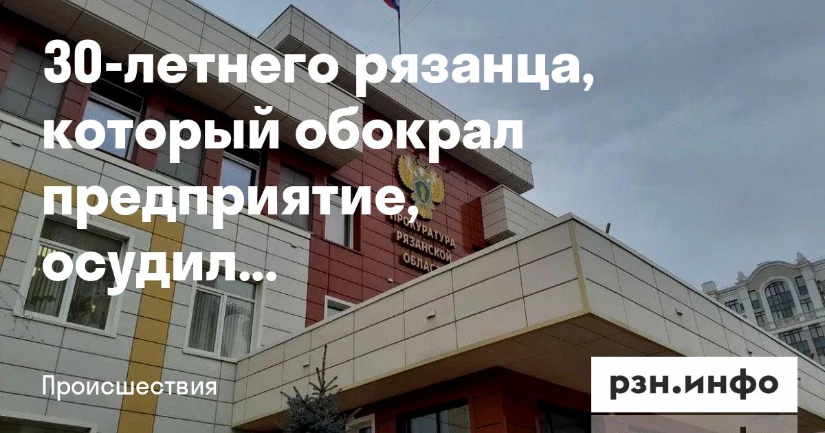 30-летнего рязанца, который обокрал предприятие, осудили. Об этом сообщает пресс-служба прокуратуры.