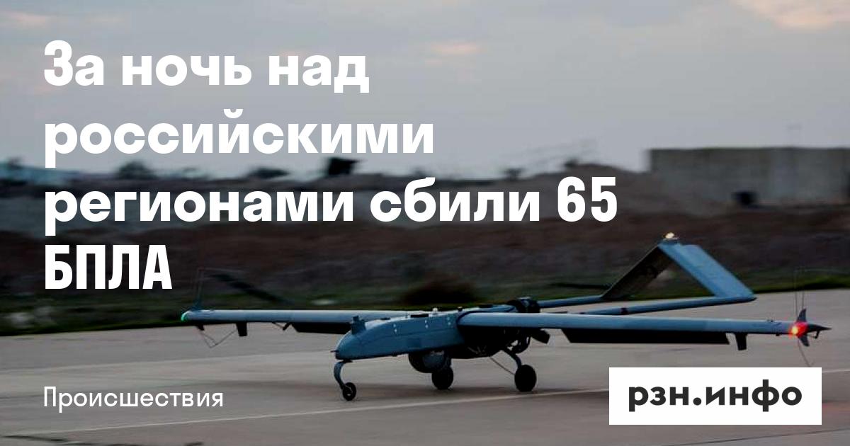 За ночь над российскими регионами сбили 65 БПЛА. Об этом сообщает пресс-служба Минобороны РФ.
