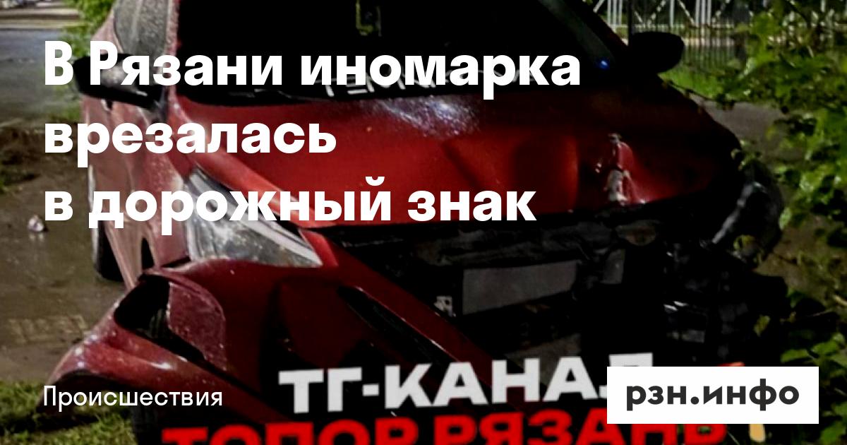 В Рязани иномарка врезалась в дорожный знак. Об этом сообщается в Telegram-канале «Топор Рязань».