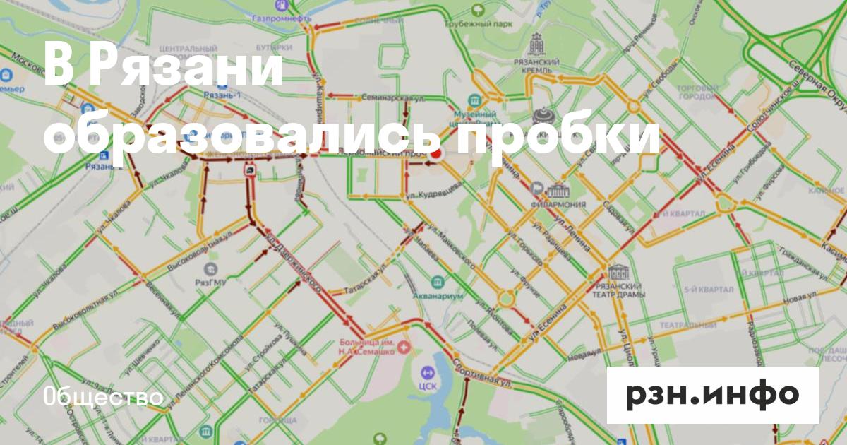 Движение затруднено на улицах Ленина, Есенина, Дзержинского, Высоковольтной, Спортивной, Зубковой, Каширина, Соборной, Сенной, Вокзальной, Новоселов, Северной окружной дороге. Также пробки образовались на Первомайском проспекте, Московском, Касимовском и Солотчинском шоссе. Согласно данным сервиса, на улице Дзержинского произошло ДТП.