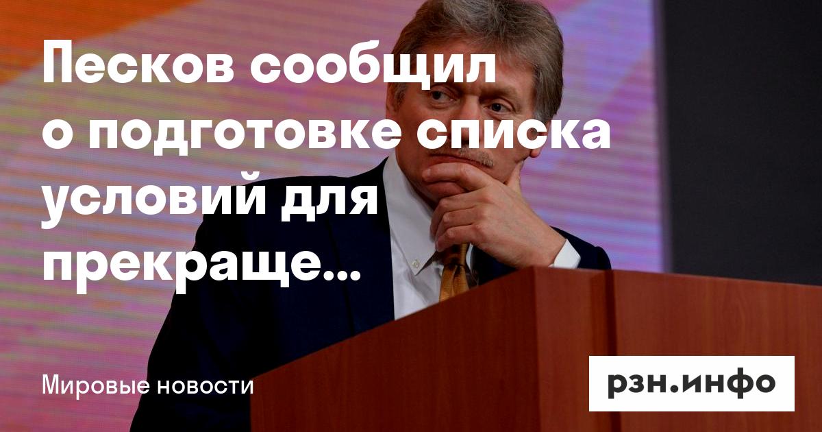 Песков сообщил о подготовке списка условий для прекращения огня на Украине