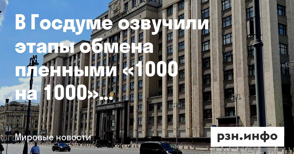В Госдуме озвучили этапы обмена пленными «1000 на 1000» с Украиной