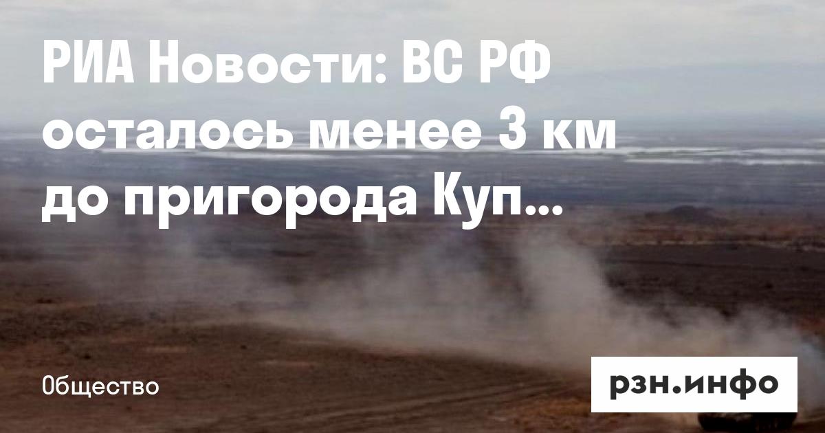 РИА Новости: ВС РФ осталось менее 3 км до пригорода Купянска