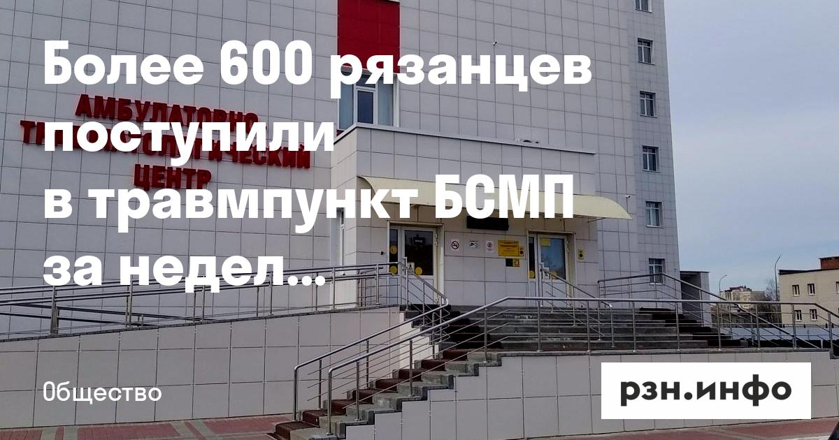 Более 600 рязанцев поступили в травмпункт БСМП за неделю. Об этом сообщает региональный минздрав.