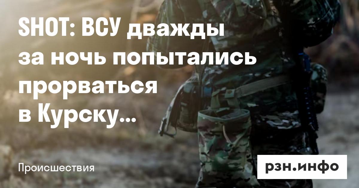 ВСУ дважды за ночь попытались прорваться на территорию Курской области. Об этом 26 мая сообщил SHOT.