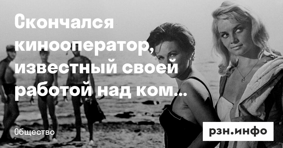 Скончался советский кинооператор, известный своей работой над комедией «Три плюс два». Об этом написала «Российская газета» со ссылкой на национальный Союз кинематографистов.