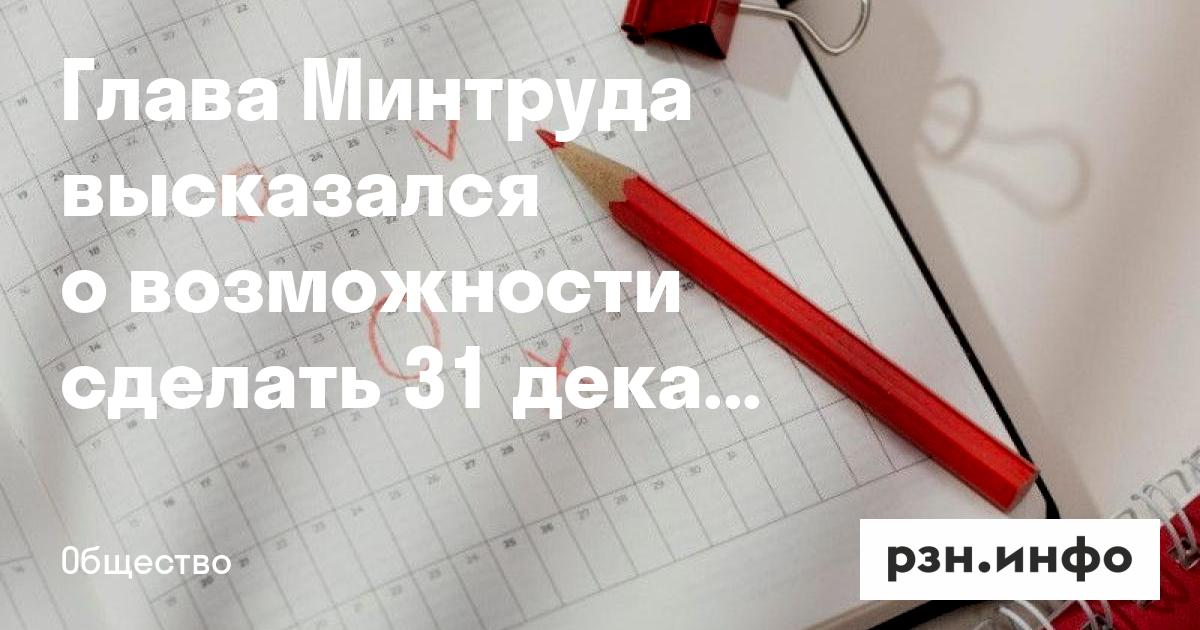Глава Минтруда высказался о возможности сделать 31 декабря выходным