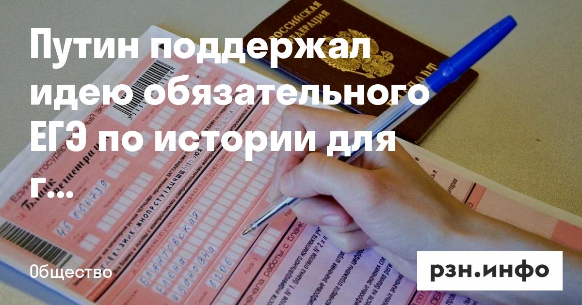 Президент России Владимир Путин поддержал идею сделать обязательным ЕГЭ по истории для гуманитариев. Об этом в воскресенье, 22 июня, сообщило РИА Новости.