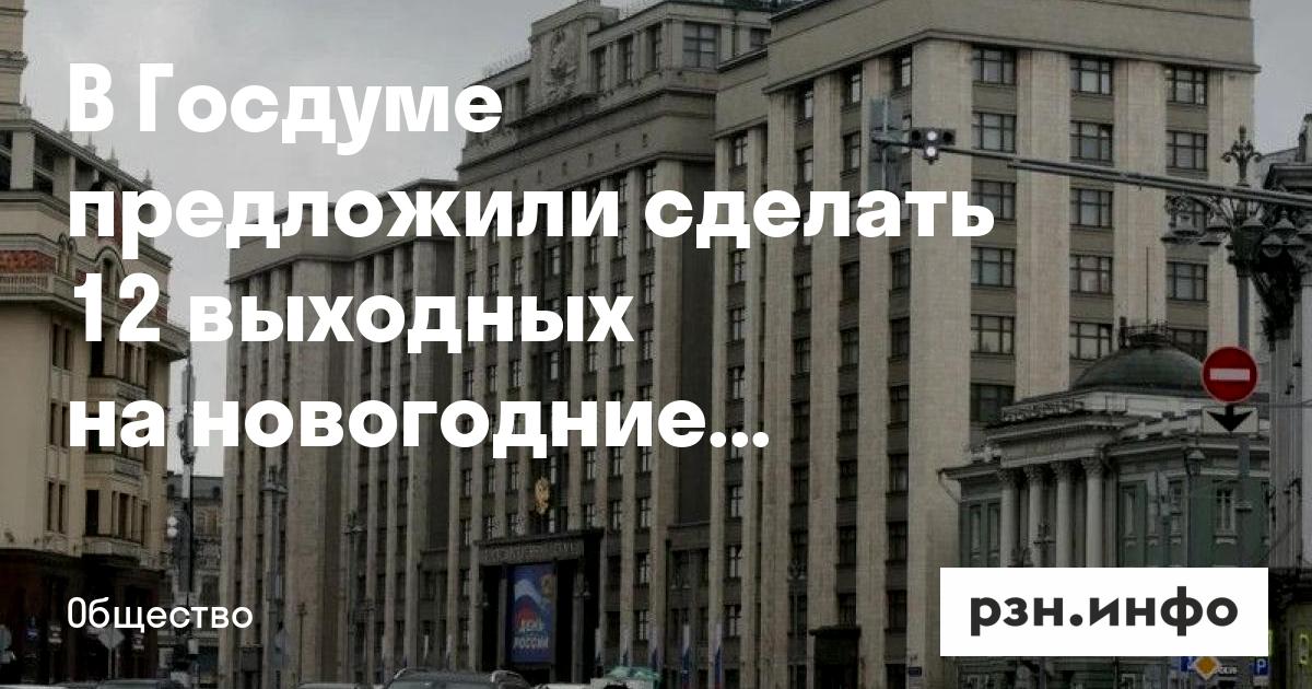 В Госдуме предложили сделать 12 выходных на новогодние праздники в 2026 году