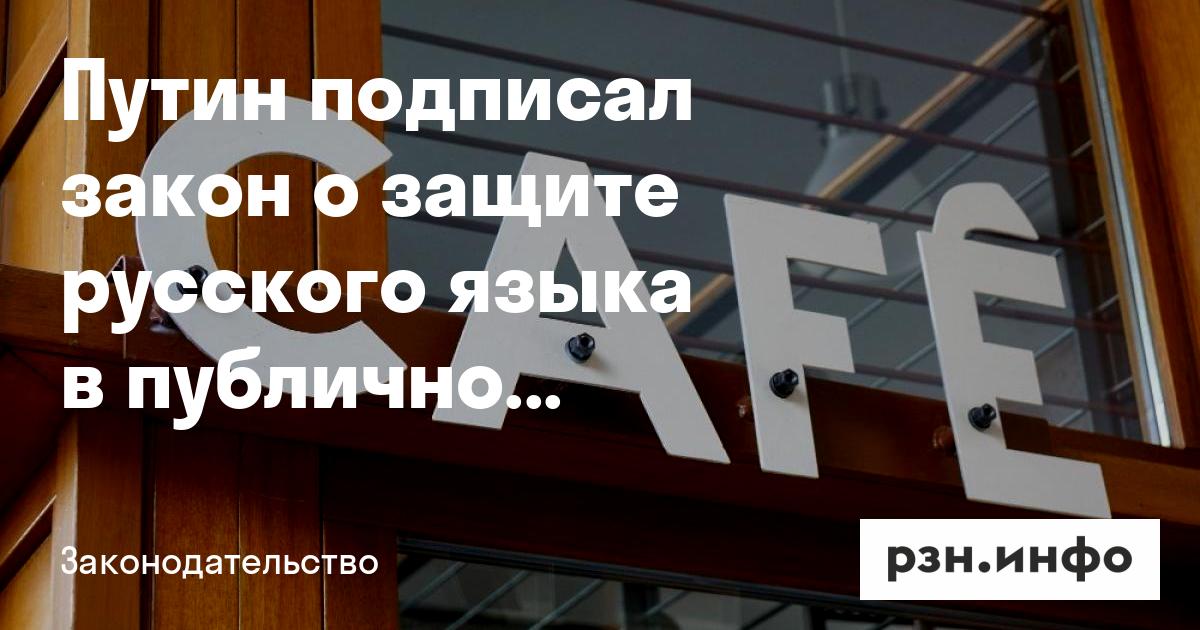 Путин подписал закон о защите русского языка в публичном пространстве. Об этом сообщает РИА Новости.