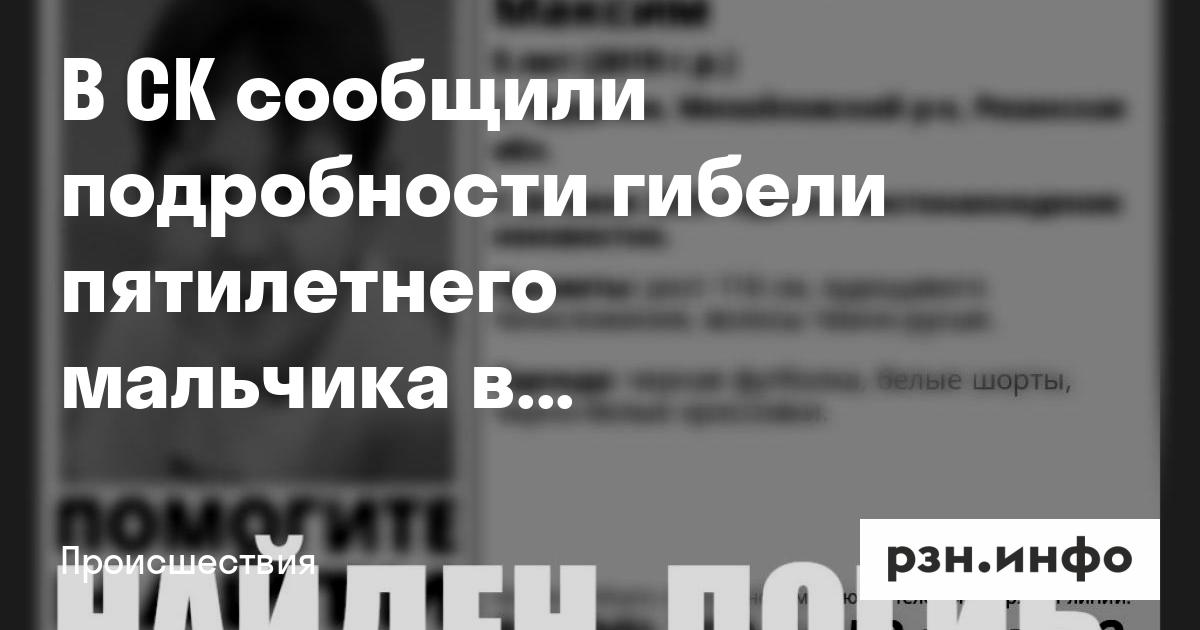 В СК сообщили подробности гибели пятилетнего мальчика в Рязанской области. Информацию опубликовало региональное ведомство.