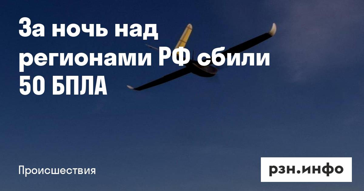 За ночь над регионами РФ сбили 50 БПЛА. Об этом сообщает Минобороны.