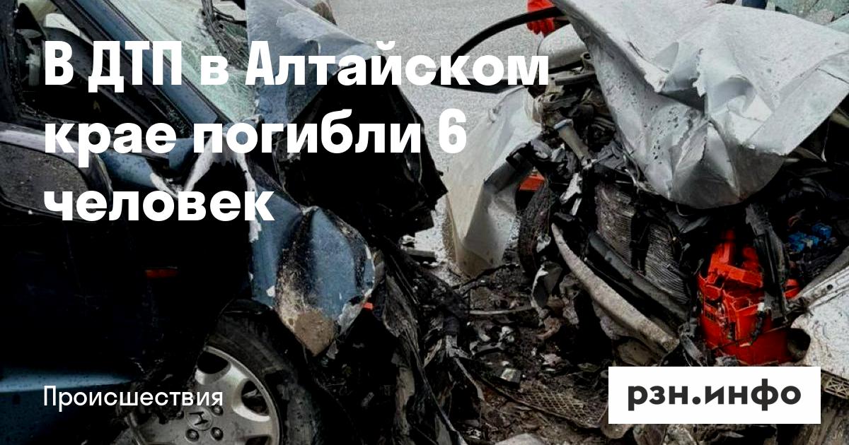 В результате лобового столкновения в Алтайском крае погибли 6 человек и 4 получили травмы. Об этом пишет телеграм-канал «Переслано из 112».