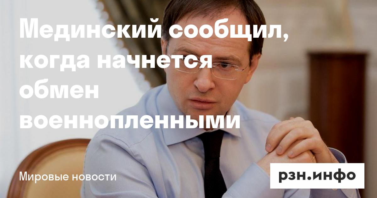 Глава делегации из РФ Владимир Мединский заявил, что обмен военнопленными начнется 7-9 июня. Об этом сообщили в Telegram-канале «Zvezdanews».