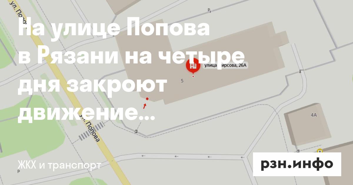 На улице Попова в Рязани на четыре дня закроют движение транспорта