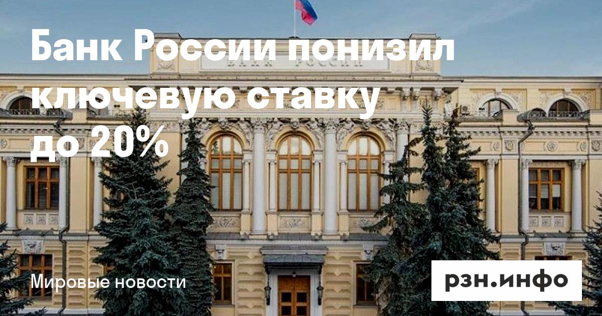 Банк России понизил ключевую ставку до 20%