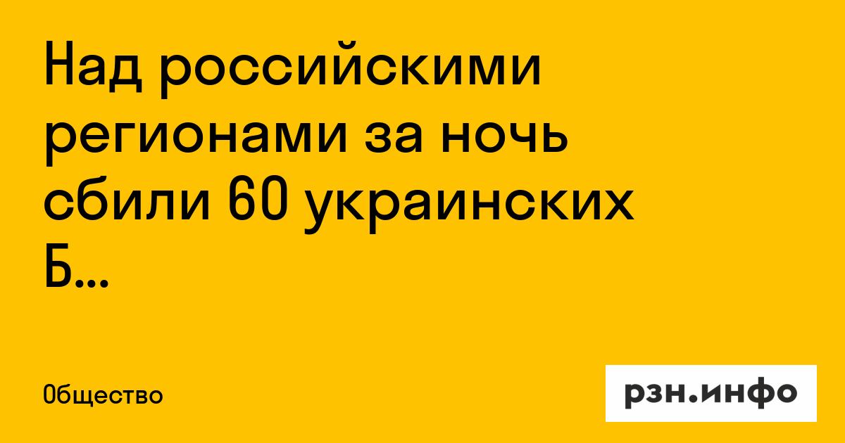 Над российскими регионами за ночь сбили 60 украинских БПЛА. Об этом сообщает Минобороны.
