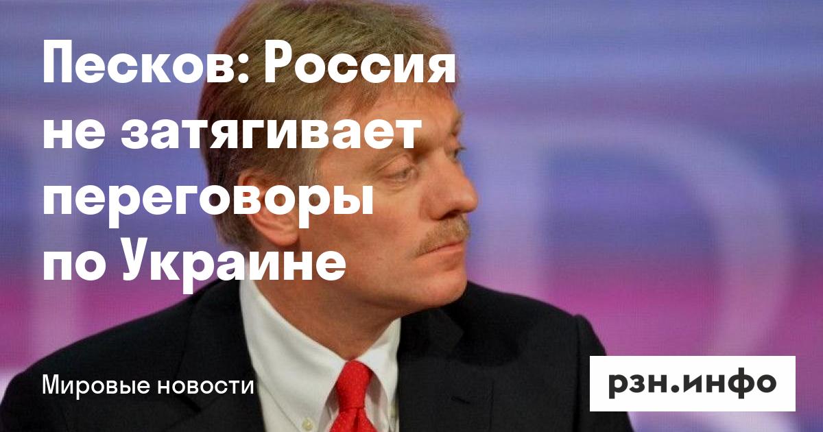 Пресс-секретарь президента Дмитрий Песков заявил, что Россия не затягивает переговоры по Украине. Его слова 1 июля передал «Интерфакс».
