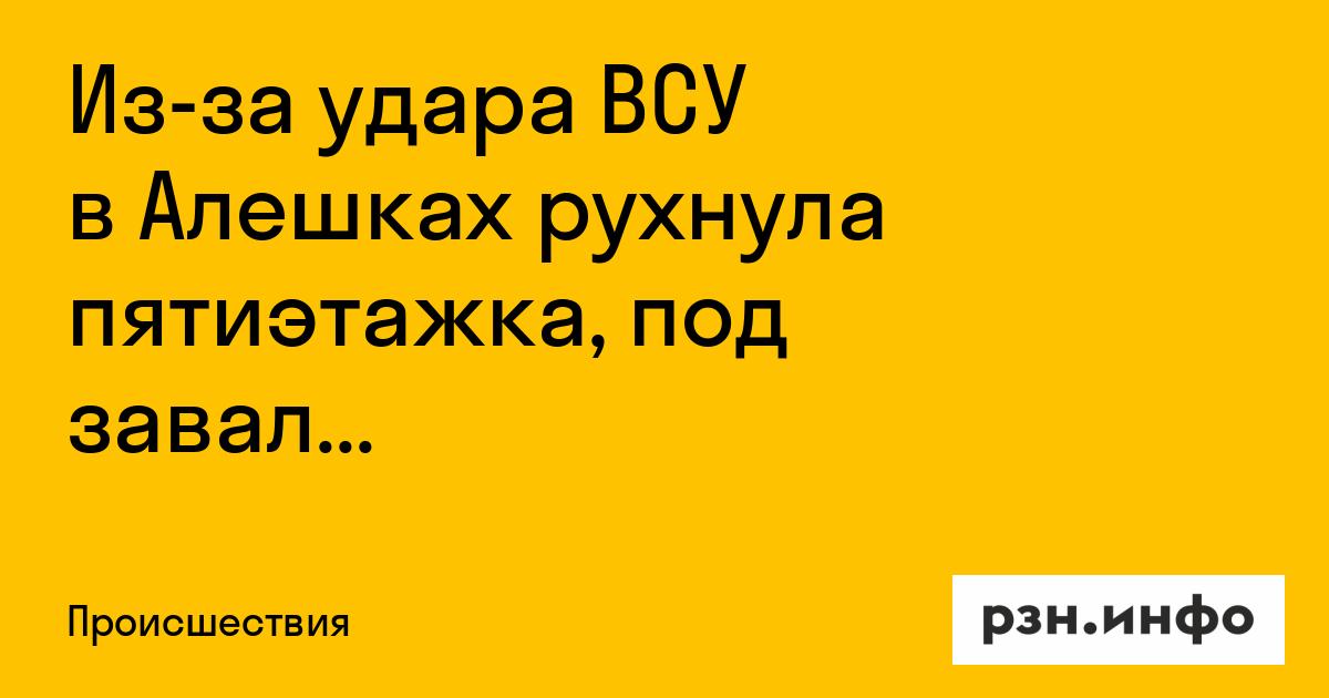 В Алешках Херсонской области в результате авиаудара ВСУ обрушился пятиэтажный дом, под завалами остаются люди. Об этом 11 июля губернатор региона Владимир Сальдо ТАСС.