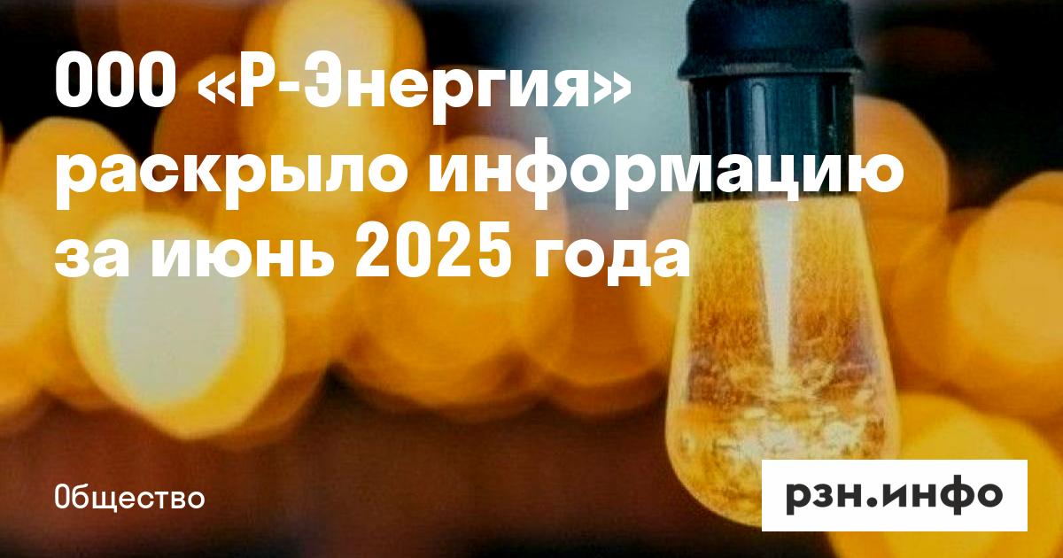 ООО «Р-Энергия» раскрыло информацию за июнь 2025 года