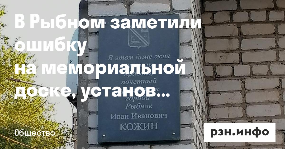 Мемориальную доску известному учителю, краеведу, почетному гражданину Рыбного Ивану Кожину на доме № 4 по улице Юбилейной установили в начале октября 2023 года. 12 июля местные жители обратили внимание, что на мемориальной доске слово «гражданин» написано с ошибкой — «граждонин». Официально информацию не комментировали.