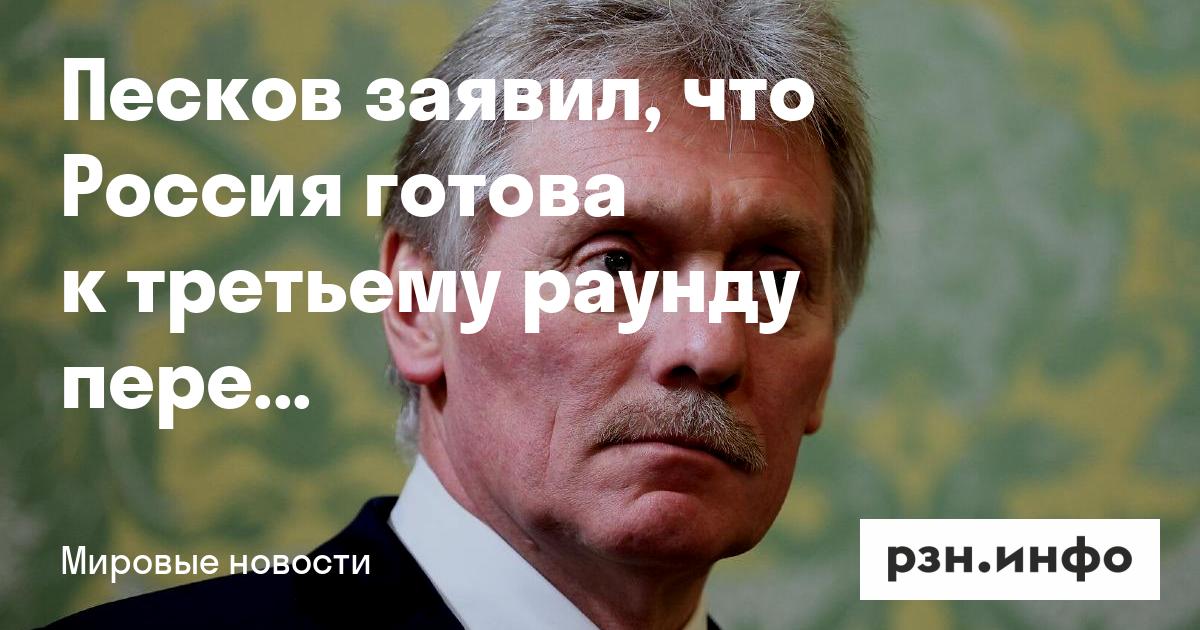 Песков заявил, что Россия готова к третьему раунду переговоров с Украиной
