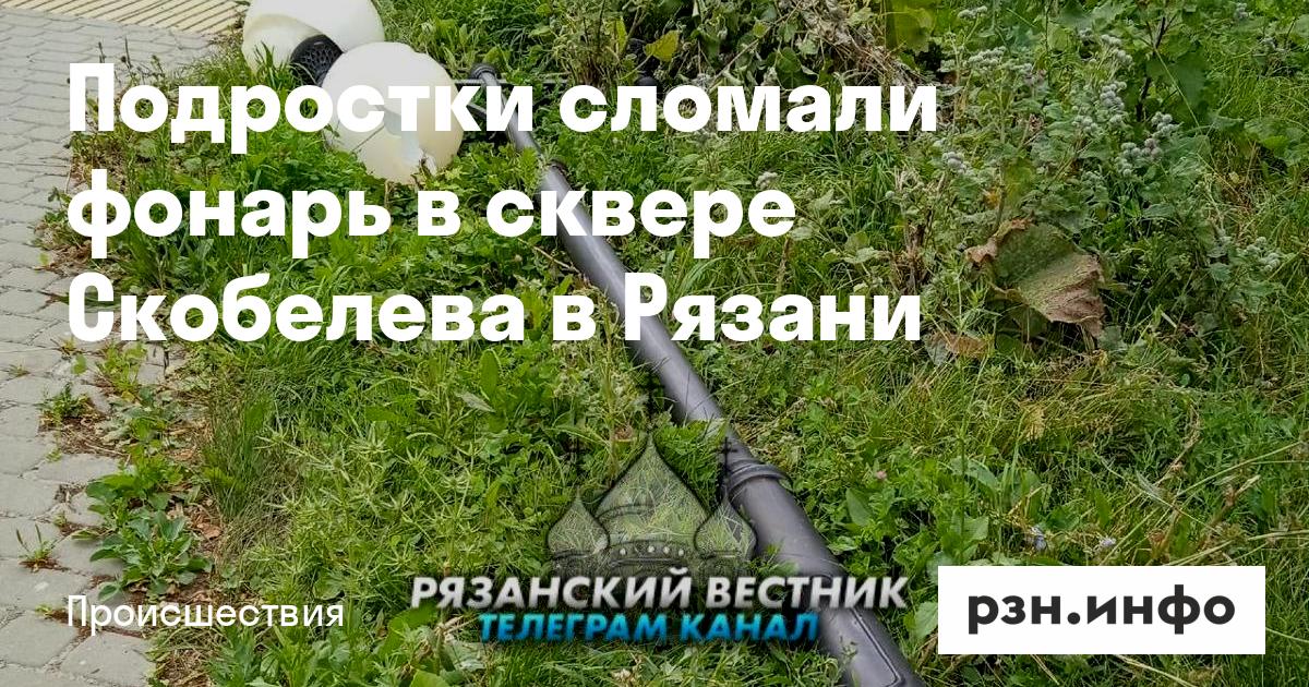 Подростки сломали фонарь в сквере Скобелева в Рязани