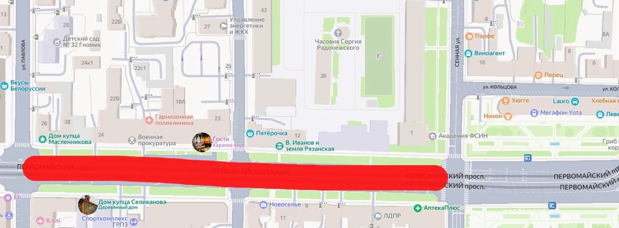 С 12:00 21 июля до 23:00 июля движение транспортных средств по Первомайскому проспекту от перекрестка с улицей Павлова до перекрестка улицей Сенной будет частично ограничено.