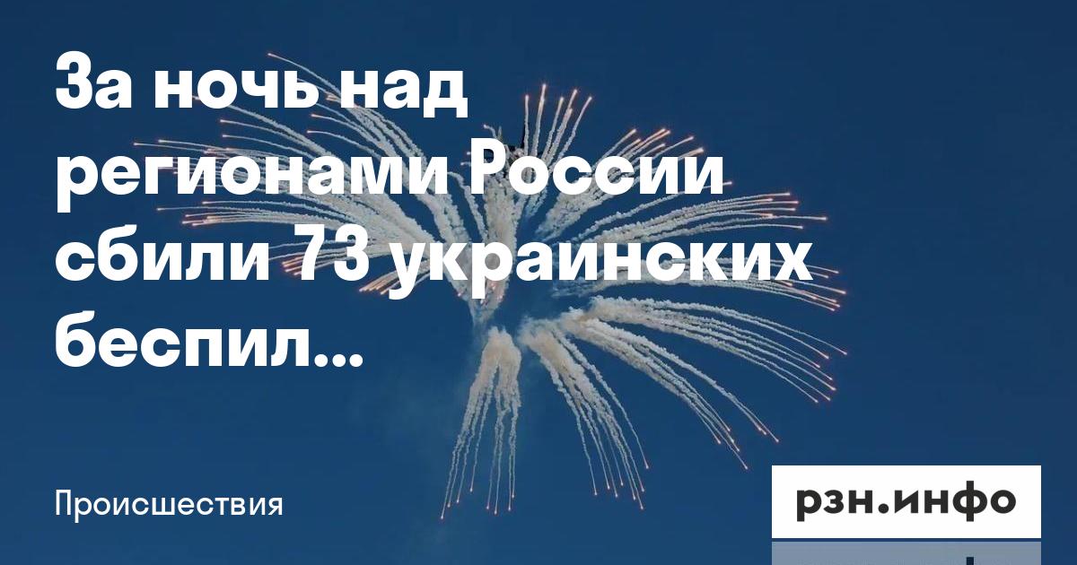 За ночь над регионами России сбили 73 украинских беспилотника. Об этом сообщило Минобороны.