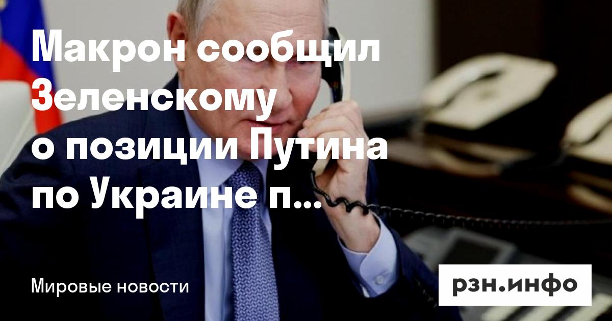 В ходе общения Макрон рассказал Зеленскому о содержании своего разговора с Путиным, отметив, что позиция российского президента по украинскому вопросу осталась неизменной.