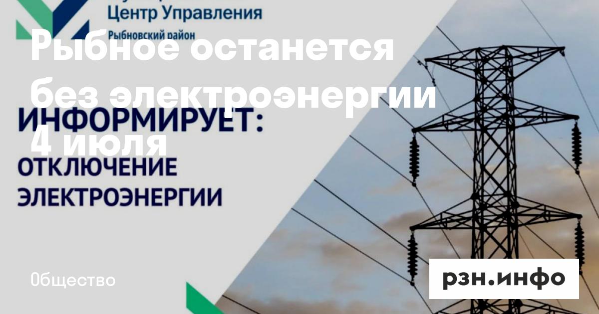 Рыбное останется без электроэнергии 4 июля. Об этом сообщает Telegram-канал района.