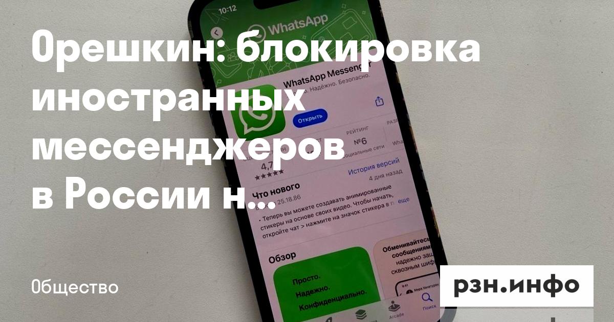 Блокировка иностранных мессенджеров в России не планируется. Об этом сообщил советник президента Орешкин, его цитирует .