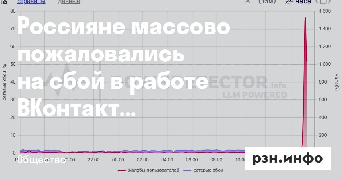 Россияне массово пожаловались на сбой в работе ВКонтакте. Об этом свидетельствуют данные сайта Downdetector.