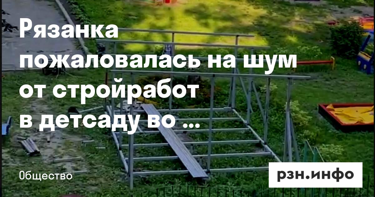Рязанка пожаловалась на шум от строительных работ в детском саду, находящемся около жилых домов, во время действия закона о тишине. Об этом она рассказала РЗН. Инфо в пятницу, 25 июля.