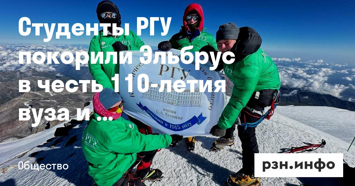 Студенты Рязанского государственного университета имени Есенина успешно завершили восхождение на Эльбрус, высшую точку России. Об этом сообщила пресс-служба университета. Это событие приурочено к двум значимым датам: 110-летию вуза и 80-летию Победы в Великой Отечественной войне. Восхождение организовал туристический клуб РГУ, созданный инициативной группой студентов, получившей поддержку руководства университета. На вершине Эльбруса был развёрнут флаг старейшего вуза Рязанской области, символизируя достижения и дух единства студентов. Ведущим секции «Эльбрус» стал Андрей Спирин, студент первого курса Юридического института.