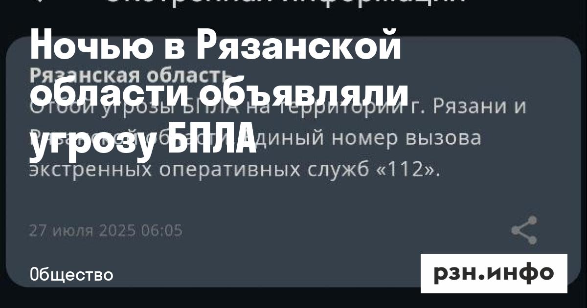 Ночью в Рязанской области объявляли угрозу БПЛА
