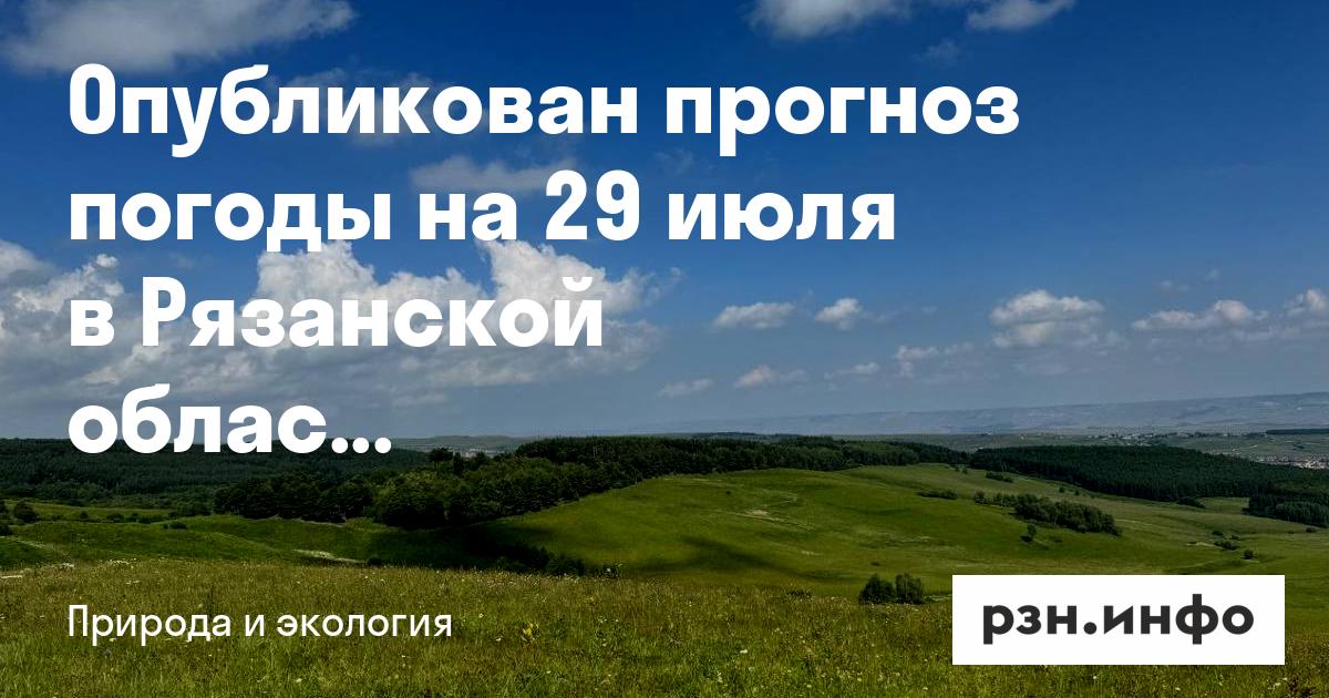 Опубликован прогноз погоды на 29 июля в Рязанской области