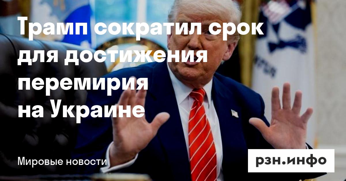 Американский лидер Дональд Трамп сократил срок для достижения перемирия на Украине. Об этом 28 июля сообщило РИА Новости.