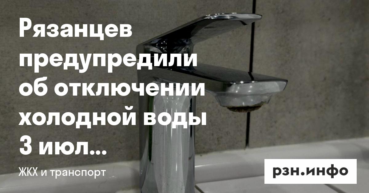 Рязанцев предупредили об отключении холодной воды 3 июля