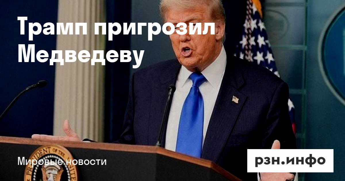 Президент США Дональд Трамп пригрозил зампреду Совбеза России Дмитрию Медведеву после слов об «игре ультиматумов». Об этом американский лидер написал в соцсети Truth Social, ИА «Регнум».