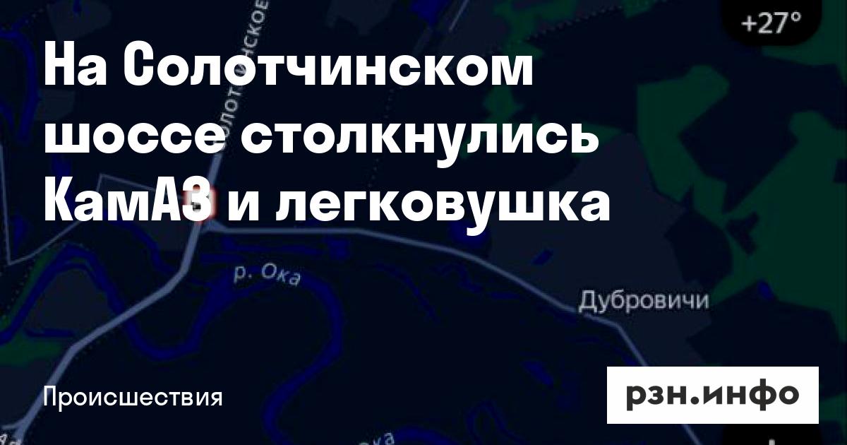На повороте от Солотчинского шоссе в сторону села Дубровичи столкнулись «КамАЗ» и легковушка. Об этом сообщили в редакцию РЗН. Инфо читатели. По словам очевидцев, из-за аварии проезд перекрыли. Также свидетели рассказали о пробке от улицы есенина: «проехать невозможно».