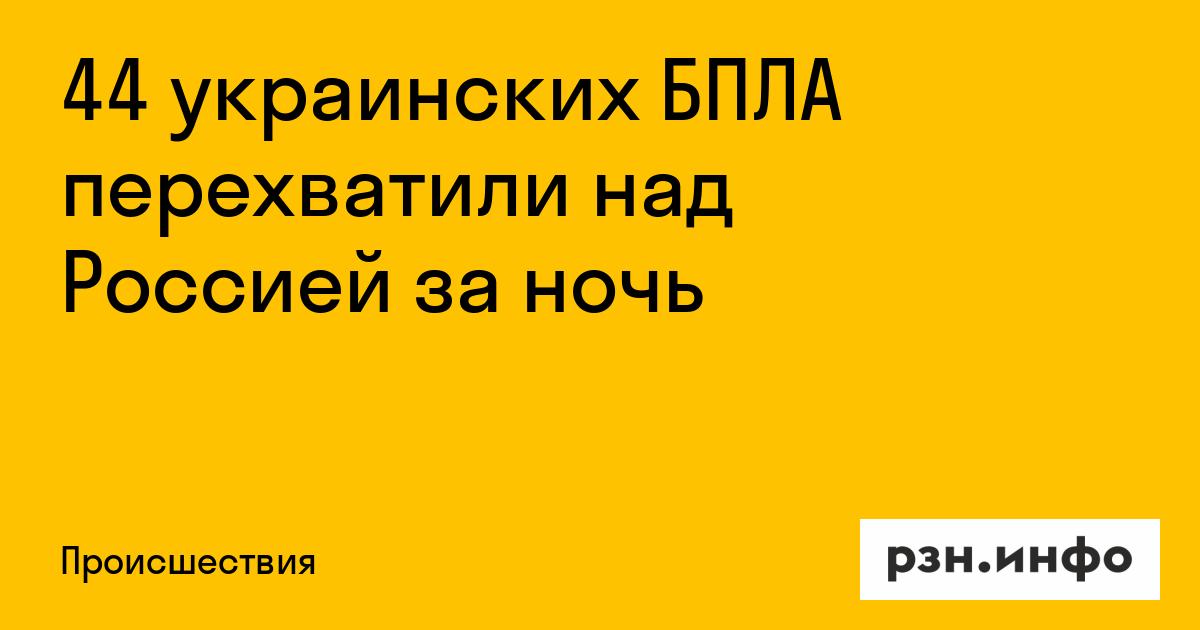 44 украинских БПЛА перехватили над Россией с 20:00 13 августа до 07:00 14 августа. Об этом сообщило Минобороны в своих соцсетях.