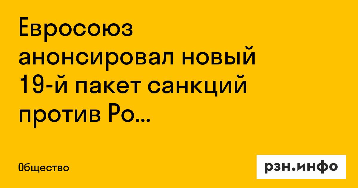 Евросоюз анонсировал новый 19-й пакет санкций против России