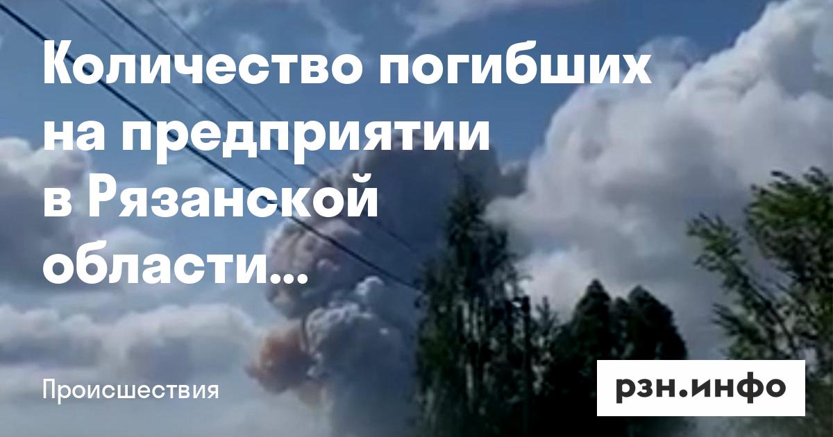 Количество погибших на предприятии в Рязанской области выросло до четырех. Об этом сообщает региональный оперштаб.